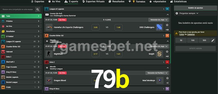 O 79b oferece uma grande seleção de opções de apostas em e-sports com probabilidades competitivas